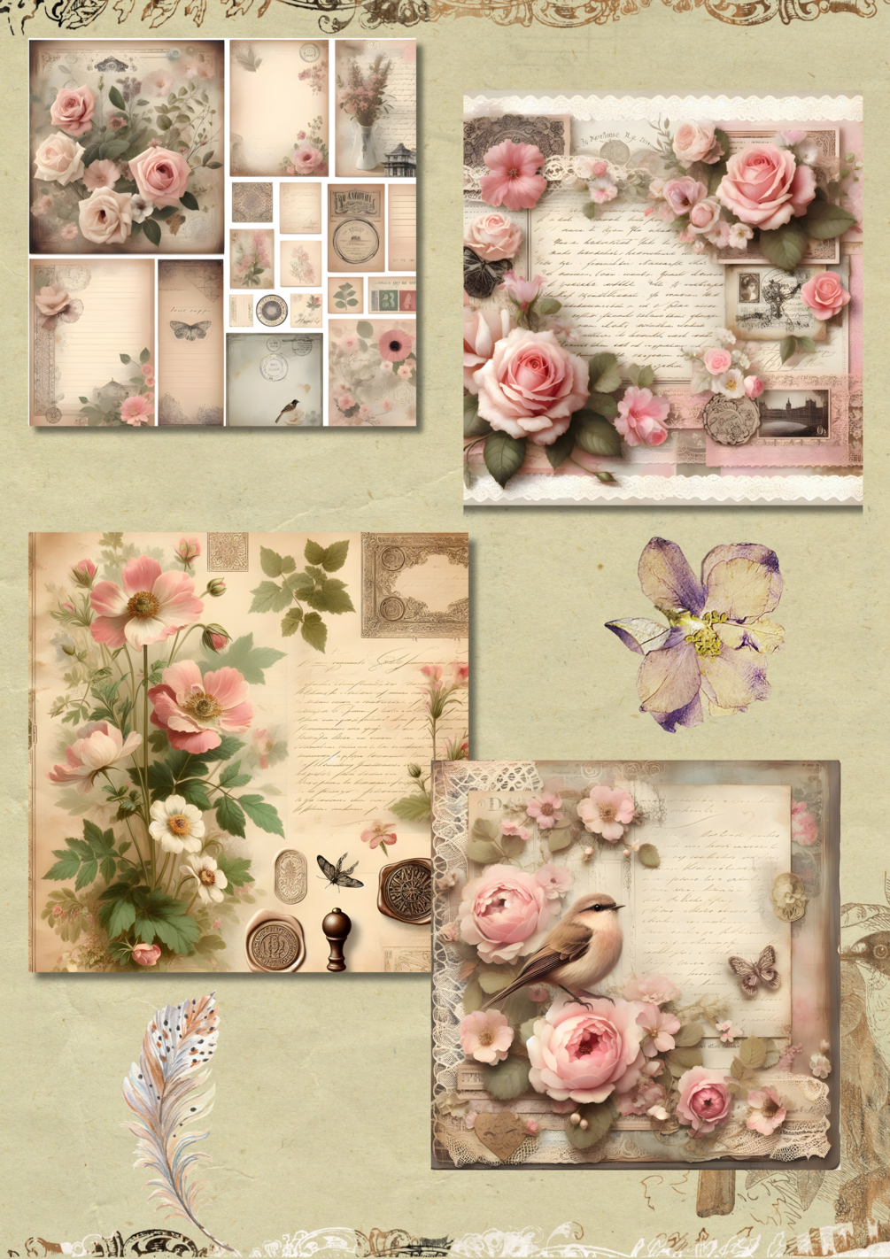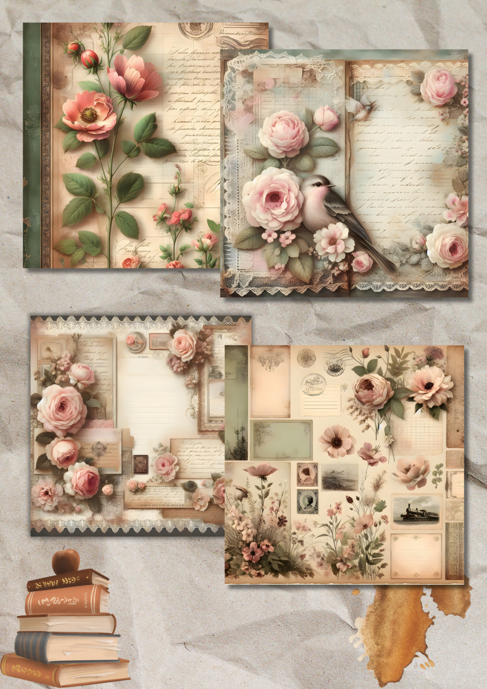 Vintage Junk Journal Printable Kit – 16 Aesthetic Pages | Grunge, Floral & Antique Paper Ephemera for Scrapbooking, Collage, DIY Journals (PDF)